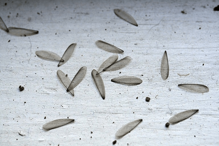 After a termite swarm, you may find piles of tiny, translucent wings near windowsills or doors. These wings are left behind when termites find a place to start a colony.
